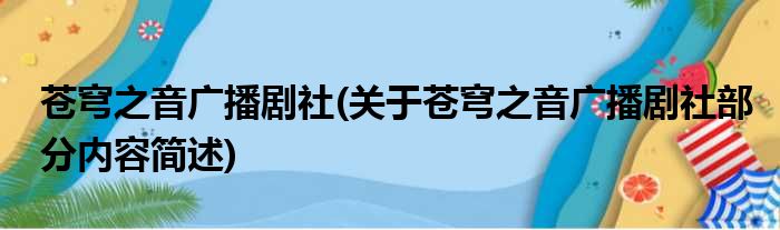 苍穹之音广播剧社(关于苍穹之音广播剧社部分内容简述)