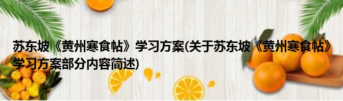 苏东坡《黄州寒食帖》学习方案(关于苏东坡《黄州寒食帖》学习方案部分内容简述)