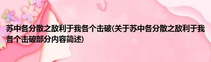 苏中各分散之敌利于我各个击破(关于苏中各分散之敌利于我各个击破部分内容简述)