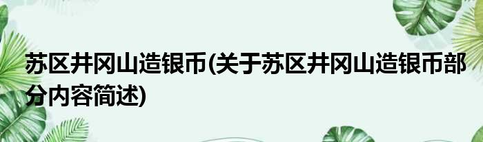 苏区井冈山造银币(关于苏区井冈山造银币部分内容简述)
