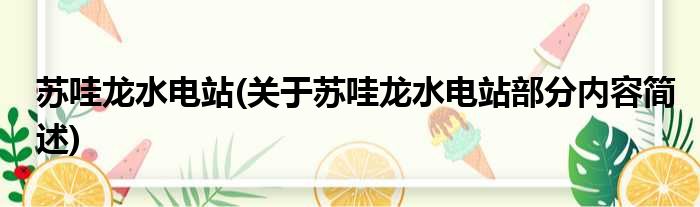 苏哇龙水电站(关于苏哇龙水电站部分内容简述)