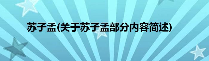 大家好,今天小方来说说一篇关于苏子孟,关于苏子孟部分内容简述的文章,那么现在就为大家来简单介绍下,希望对各位小伙伴们有所帮助。