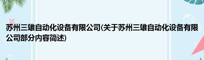 苏州三雄自动化设备有限公司(关于苏州三雄自动化设备有限公司部分内容简述)