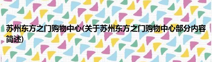 苏州东方之门购物中心(关于苏州东方之门购物中心部分内容简述)