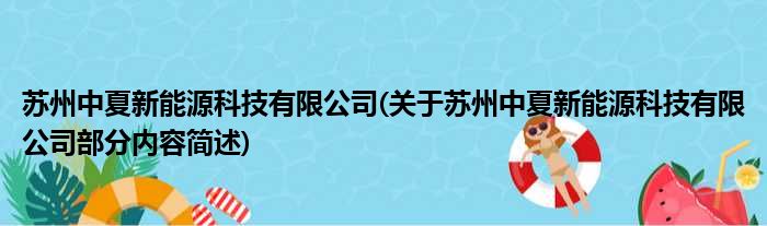 苏州中夏新能源科技有限公司(关于苏州中夏新能源科技有限公司部分内容简述)