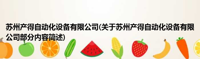 苏州产得自动化设备有限公司(关于苏州产得自动化设备有限公司部分内容简述)