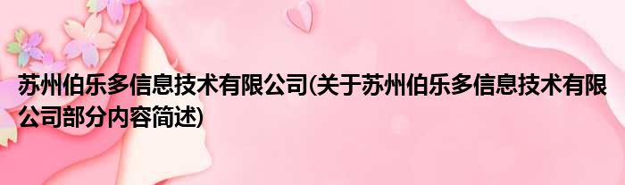 苏州伯乐多信息技术有限公司(关于苏州伯乐多信息技术有限公司部分内容简述)