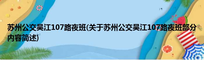 苏州公交吴江107路夜班(关于苏州公交吴江107路夜班部分内容简述)