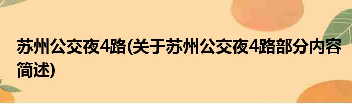 苏州公交夜4路(关于苏州公交夜4路部分内容简述)