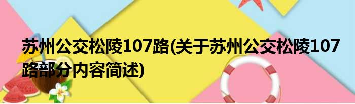 苏州公交松陵107路(关于苏州公交松陵107路部分内容简述)