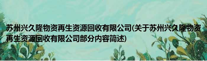苏州兴久隆物资再生资源回收有限公司(关于苏州兴久隆物资再生资源回收有限公司部分内容简述)