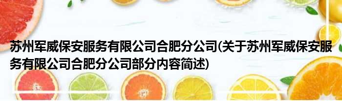 苏州军威保安服务有限公司合肥分公司(关于苏州军威保安服务有限公司合肥分公司部分内容简述)