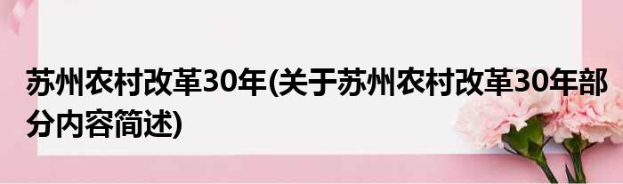 苏州农村改革30年(关于苏州农村改革30年部分内容简述)