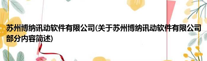 苏州博纳讯动软件有限公司(关于苏州博纳讯动软件有限公司部分内容简述)