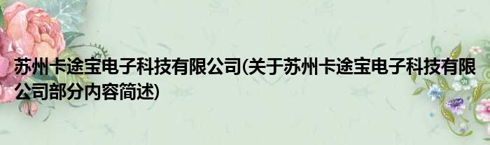 苏州卡途宝电子科技有限公司(关于苏州卡途宝电子科技有限公司部分内容简述)