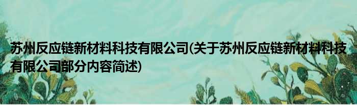 苏州反应链新材料科技有限公司(关于苏州反应链新材料科技有限公司部分内容简述)