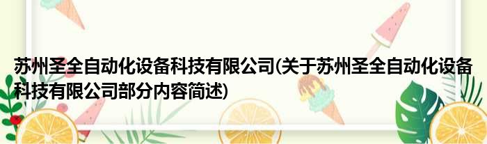 苏州圣全自动化设备科技有限公司(关于苏州圣全自动化设备科技有限公司部分内容简述)