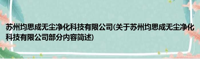 苏州均思成无尘净化科技有限公司(关于苏州均思成无尘净化科技有限公司部分内容简述)