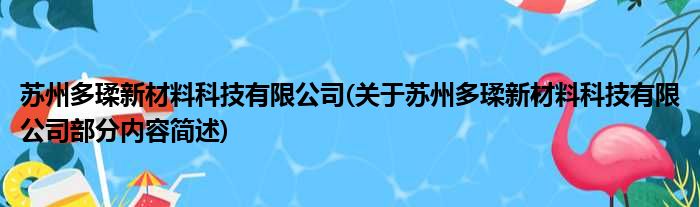 苏州多瑈新材料科技有限公司(关于苏州多瑈新材料科技有限公司部分内容简述)