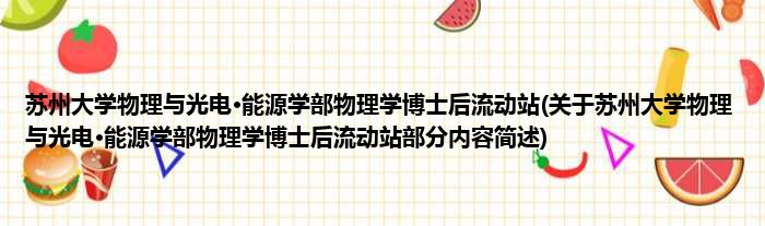 苏州大学物理与光电·能源学部物理学博士后流动站(关于苏州大学物理与光电·能源学部物理学博士后流动站部分内容简述)
