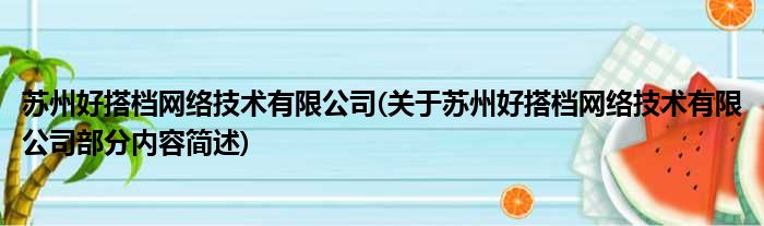 苏州好搭档网络技术有限公司(关于苏州好搭档网络技术有限公司部分内容简述)