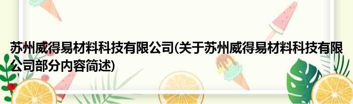 苏州威得易材料科技有限公司(关于苏州威得易材料科技有限公司部分内容简述)