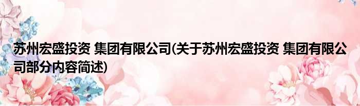 苏州宏盛投资 集团有限公司(关于苏州宏盛投资 集团有限公司部分内容简述)