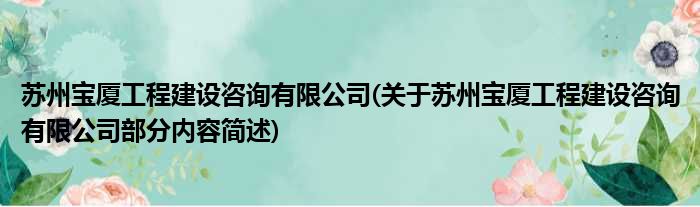 苏州宝厦工程建设咨询有限公司(关于苏州宝厦工程建设咨询有限公司部分内容简述)