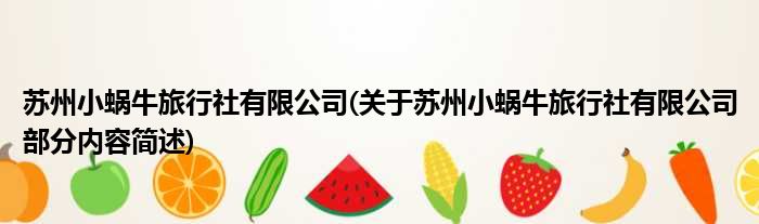 苏州小蜗牛旅行社有限公司(关于苏州小蜗牛旅行社有限公司部分内容简述)