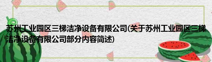 苏州工业园区三梯洁净设备有限公司(关于苏州工业园区三梯洁净设备有限公司部分内容简述)