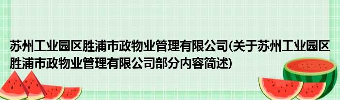 苏州工业园区胜浦市政物业管理有限公司(关于苏州工业园区胜浦市政物业管理有限公司部分内容简述)