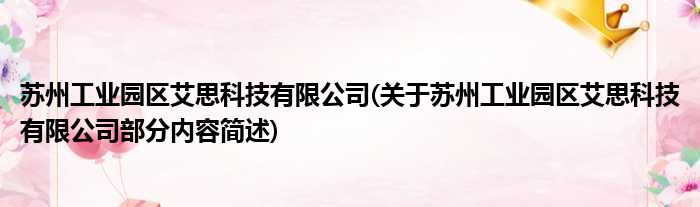 苏州工业园区艾思科技有限公司(关于苏州工业园区艾思科技有限公司部分内容简述)
