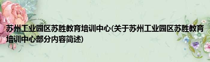 苏州工业园区苏胜教育培训中心(关于苏州工业园区苏胜教育培训中心部分内容简述)