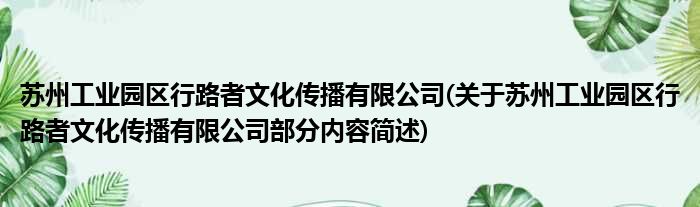 苏州工业园区行路者文化传播有限公司(关于苏州工业园区行路者文化传播有限公司部分内容简述)