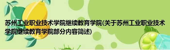 苏州工业职业技术学院继续教育学院(关于苏州工业职业技术学院继续教育学院部分内容简述)