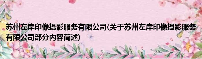 苏州左岸印像摄影服务有限公司(关于苏州左岸印像摄影服务有限公司部分内容简述)