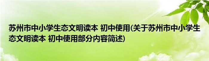 苏州市中小学生态文明读本 初中使用(关于苏州市中小学生态文明读本 初中使用部分内容简述)