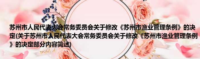 苏州市人民代表大会常务委员会关于修改《苏州市渔业管理条例》的决定(关于苏州市人民代表大会常务委员会关于修改《苏州市渔业管理条例》的决定部分内容简述)