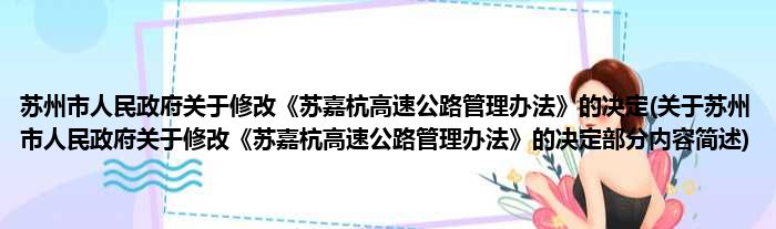 苏州市人民政府关于修改《苏嘉杭高速公路管理办法》的决定(关于苏州市人民政府关于修改《苏嘉杭高速公路管理办法》的决定部分内容简述)