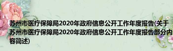 苏州市医疗保障局2020年政府信息公开工作年度报告(关于苏州市医疗保障局2020年政府信息公开工作年度报告部分内容简述)