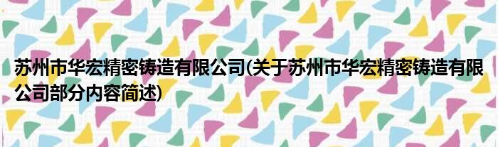 苏州市华宏精密铸造有限公司(关于苏州市华宏精密铸造有限公司部分内容简述)