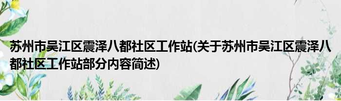 苏州市吴江区震泽八都社区工作站(关于苏州市吴江区震泽八都社区工作站部分内容简述)
