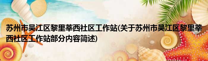 苏州市吴江区黎里莘西社区工作站(关于苏州市吴江区黎里莘西社区工作站部分内容简述)