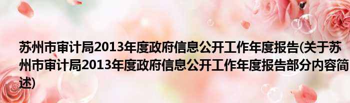 苏州市审计局2013年度政府信息公开工作年度报告(关于苏州市审计局2013年度政府信息公开工作年度报告部分内容简述)