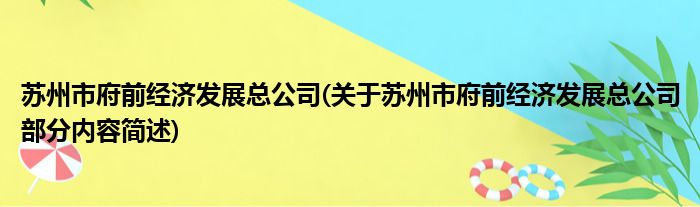 苏州市府前经济发展总公司(关于苏州市府前经济发展总公司部分内容简述)