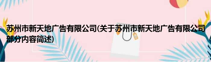 苏州市新天地广告有限公司(关于苏州市新天地广告有限公司部分内容简述)