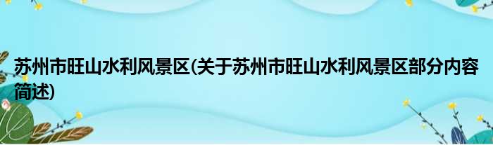 苏州市旺山水利风景区(关于苏州市旺山水利风景区部分内容简述)
