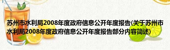 苏州市水利局2008年度政府信息公开年度报告(关于苏州市水利局2008年度政府信息公开年度报告部分内容简述)