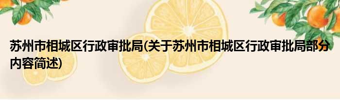 苏州市相城区行政审批局(关于苏州市相城区行政审批局部分内容简述)