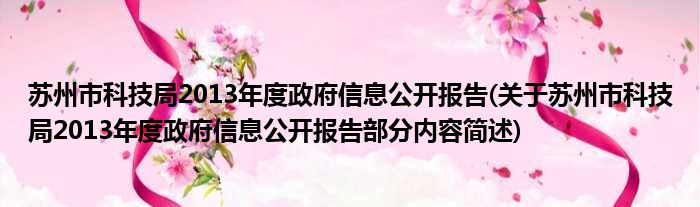 苏州市科技局2013年度政府信息公开报告(关于苏州市科技局2013年度政府信息公开报告部分内容简述)